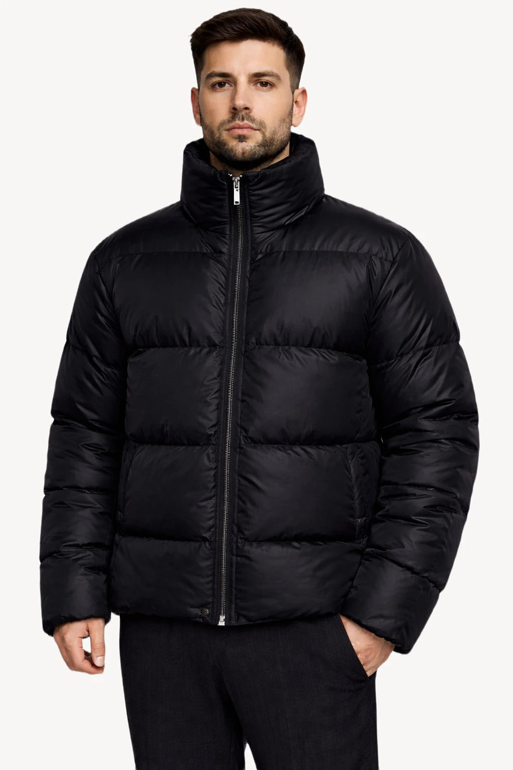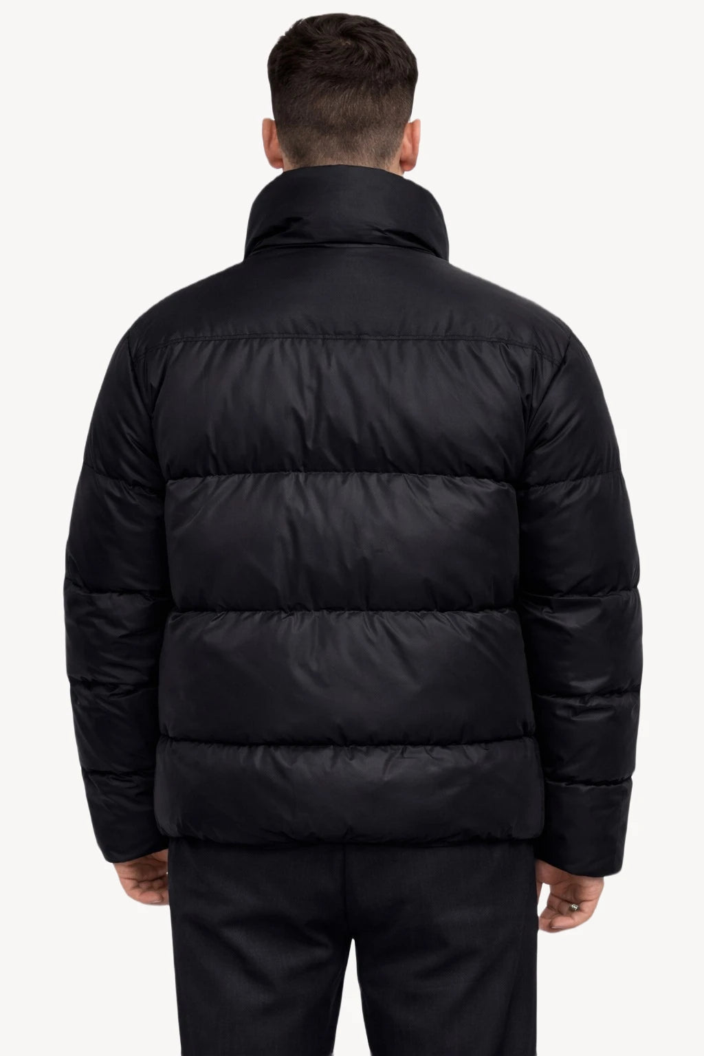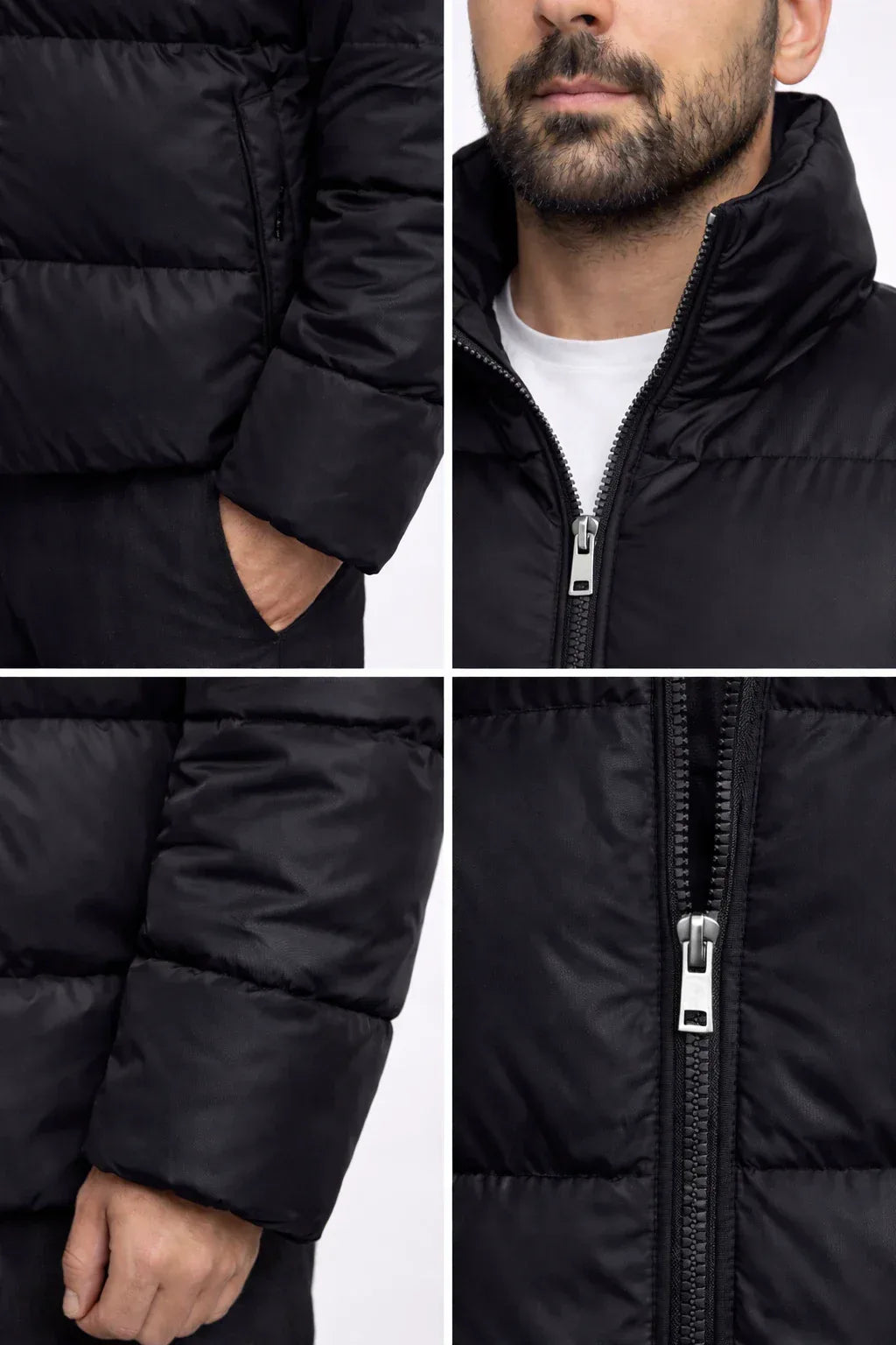 Siyah Dik Yaka Kapitone Erkek Şişme Mont